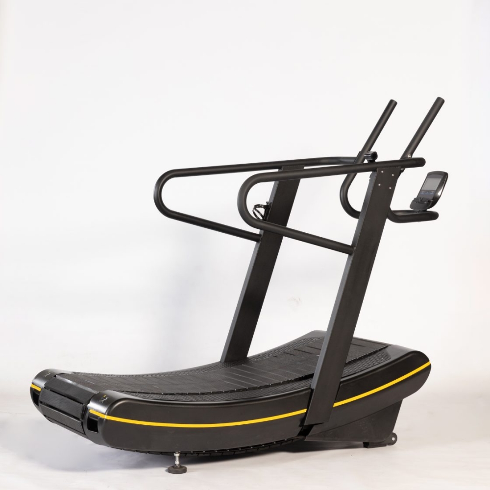 (4) Krökt löpband– För 8 km löpning & riktig vägmotstånd utgör löpning mer än 50 % av HYROX och utgör grunden för uthållighet. Jämfört med traditionella motoriserade löpband passar böjda löpband bättre HYROX-träning: självdrivande, simulerar verkligt vägmotstånd och förbättrar löpekonomin och benuthålligheten utan passiv rörelse.
